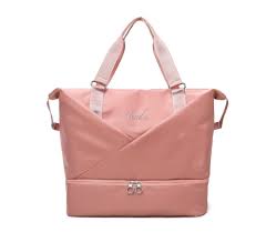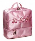 Pink satin barrel bag with a seperate internal pocket for carrying shoes.